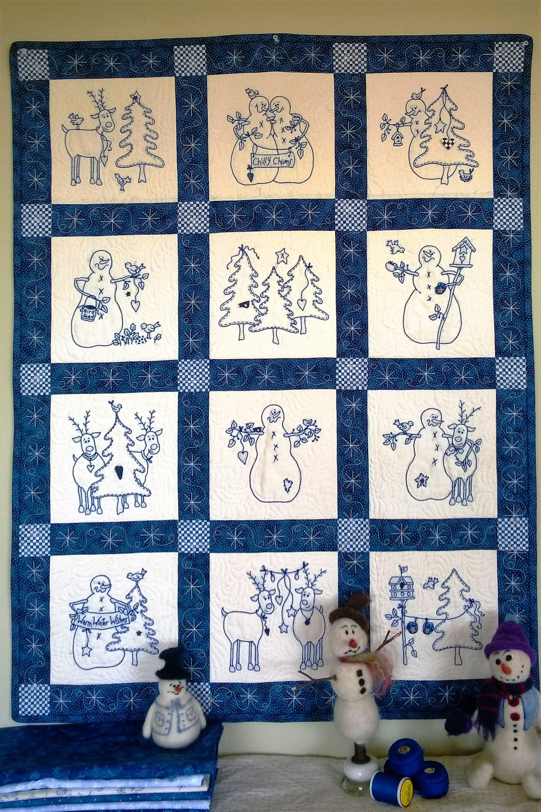 Snowmen Reindeer Quilt Hand Embroidery Pattern Etsy