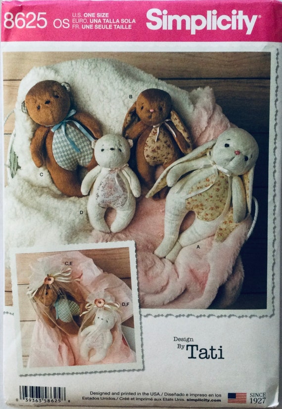 Simplicity 8625 Sewing Pattern For Stuffed Teddies And Rabbits Etsy