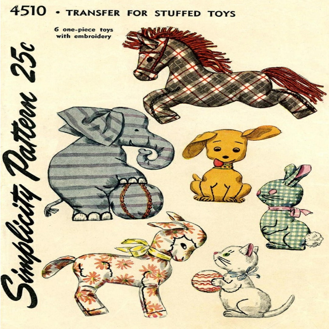 Soft Toys Pattern Simplicity 4510 Elephant Horse Dog Cat Etsy Israel